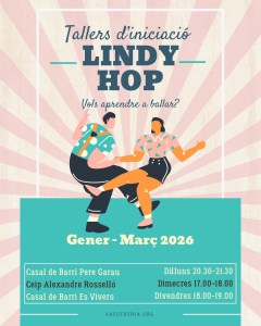 - Segon trimestre 2026Al gener començam el nou trimestre! Lindy Hop per a tots els nivells! FORMULARI D’INSCRIPCIÓ AQUÍ! https://forms.gle/zch1aEFKJxw58spT7